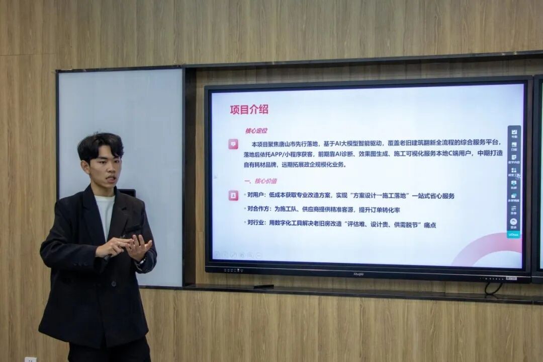 本次双创竞赛种子赛组织严谨、流程顺畅,各项目团队应答沉着、思路清晰,充分体现出扎实的专业功底与敏捷的思维能力。答辩平台不仅是学生展示创意与成果的窗口,也为跨专业团队提供了交流协作、相互启发的机会。参赛同学普遍表示,通过评委的针对性指导和现场观摩学习,对项目的逻辑结构与发展路径有了更清晰的把握,后续将认真吸收评审意见,进一步优化项目方案,推动项目从构思走向实践,从校园走向更广阔的舞台。